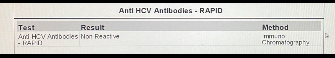 HBsAg-RAPID 08-04-2025 07:05:PM NegativeAnti HCV Antibodies - RAPID 08-04-2025 07:05:PM